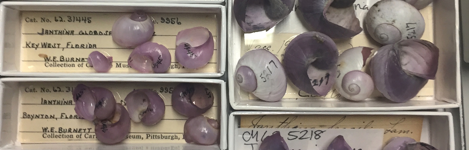 Research requests to borrow specific specimens may also be made and are granted at the discretion of the assistant curator of the Section of Mollusks. Specimen loans are typically made to permanent staff at universities and museums; loans to students are typically made in care of their advisors who are responsible for the loan. Any destructive sampling of the specimens such as dissection, tissue sampling (e.g., for molecular studies), radula studies, or shell chemistry studies must be approved in writing in advance. All parts remaining after such sampling must be returned. At the time the loan is returned, we request confirmation of identifications or re-identifications. Please acknowledge Carnegie Museum of Natural History as the source of the material. We request copies of any publications resulting from the study of the loaned material. We especially appreciate when catalog numbers are mentioned in publications.