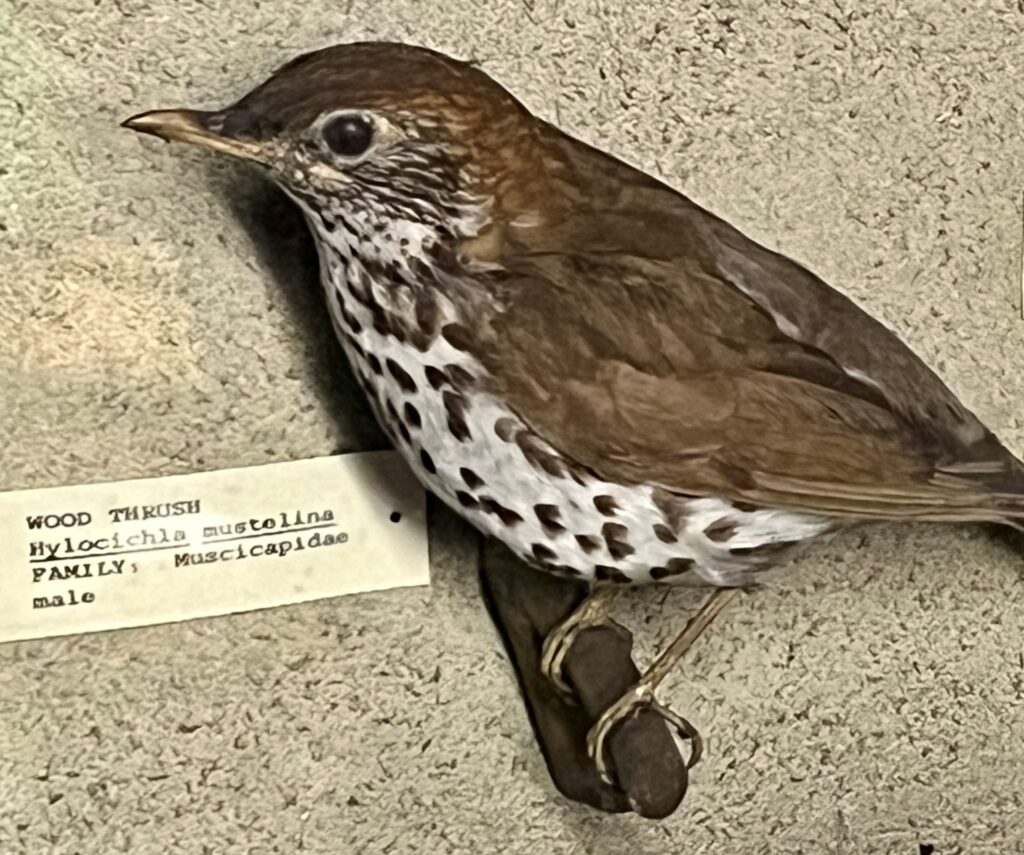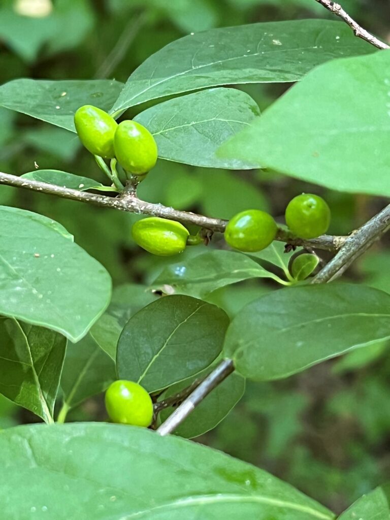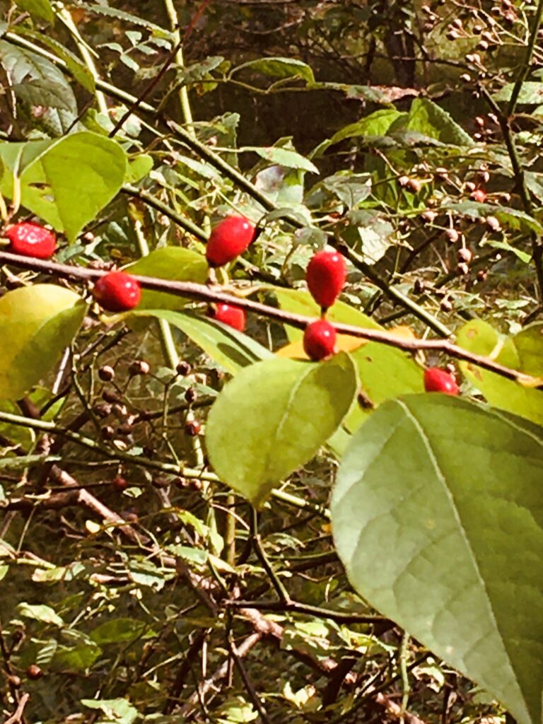 In late summer and early fall, when the ripening of the plant’s fruit is signaled by a green to red color change, the biocube would likely have some avian visitors. The ripened fruits are an important seasonal food source for Wood Thrush and other migrating songbirds. In actions that would likely occur outside the bounds of the biocube, these birds contribute to overall health of northern spicebush in our forests by spreading the plants’ seeds in their droppings.