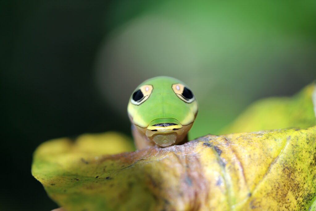 The broad head of the caterpillar at this stage sports two false eye spots, markings that might provide some predator protection by contributing to an overall visual impression of a small alert snake.