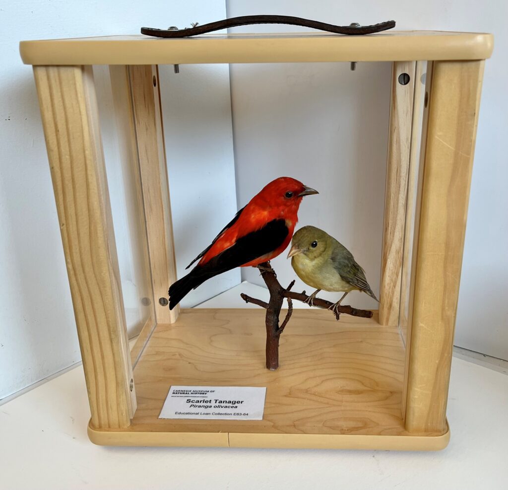 Nick borrowed encased taxidermy mounts from the Museum’s Educator Loan Collection for use in some camp sessions, but magazine pictures of birds, field guide images, and especially, the taxidermy mounts of the Museum’s Bird Hall, can also stimulate discussion. Nick simply asked campers to report what they noticed about the preserved birds. “Often their observations were about the feathers. But then we’d talk about the beak and the feet. Those observations helped them to connect the bird to a habitat type or a food preference, and follow-up conversations were about how places as specific as backyards, treetops, or even tree trunks met the needs of some birds.”