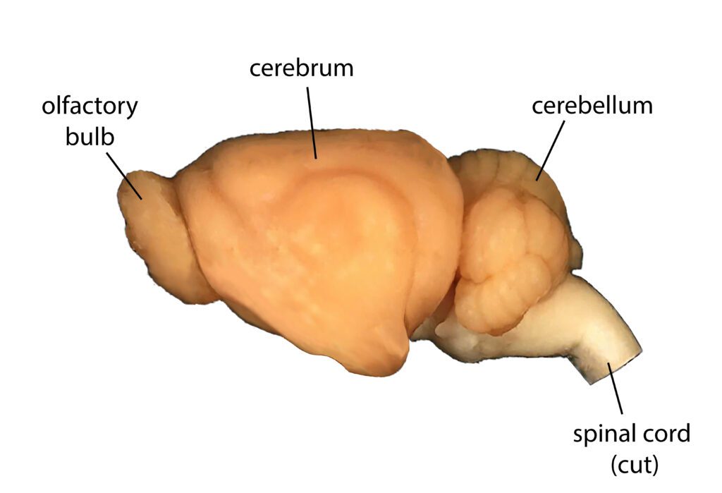 Although DNA supports relationships of pangolins and carnivorans, we are hard pressed to find anatomical features that link the two groups. One unusual feature shared by both and, therefore, hypothesized to be present in their common ancestor is the os tentorium or brain bone! A typical mammalian brain is composed of three parts delimited by deep grooves, termed sulci, the fore-, mid-, and hindbrain, which correspond respectively to the olfactory bulbs, cerebrum, and cerebellum.