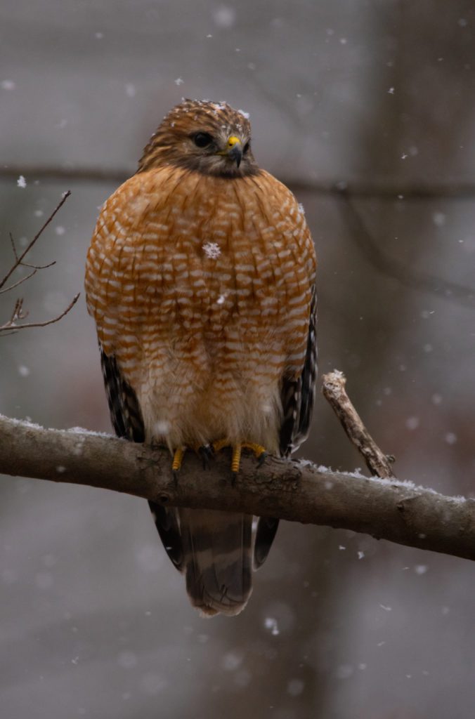 Last year, warm weather extended far into the fall, and the Rector count recorded high totals of many species that we would normally expect to spend the winter a bit further south. This year, however, the fall weather was more typical of southwestern Pennsylvania, and temperatures on the day of the count hovered around freezing as large, fluffy snowflakes fell throughout the morning. The day began early as a few ambitious birders searched for owls before dawn, finding eight Eastern Screech Owls. By dawn, all participants headed to their sectors to count diurnal birds, while an additional eight birders counted what they saw and heard in their yards and visiting their feeders. As dusk fell, CBC participants met at Powdermill for a tally dinner, an evening of camaraderie and sharing stories from the day. Although the species total was only 59, which is slightly below average, individual numbers for each of these species were typical. A few, including Wild Turkey, Bald Eagle, Red-shouldered Hawk, Winter Wren, and Eastern Bluebird even saw new high-count records.