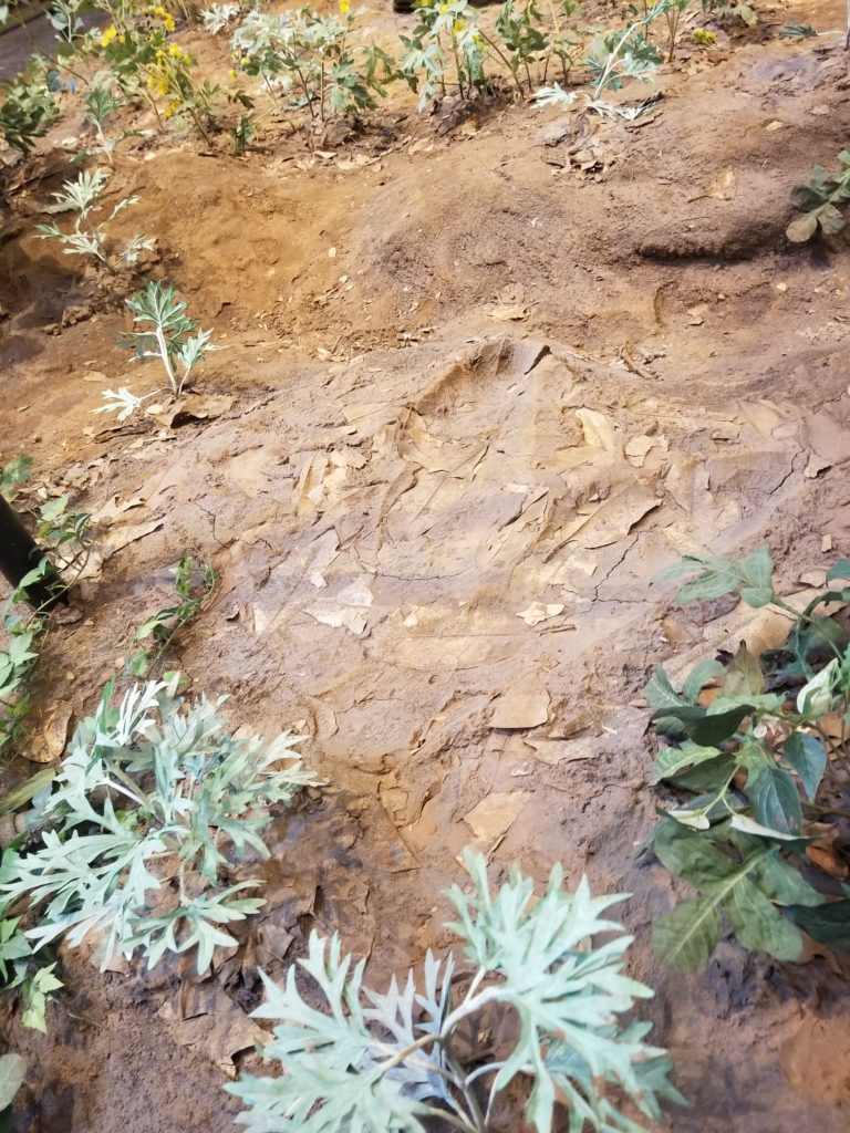 I grew up in the silent Canadian Arctic, so sounds switch me to alertness. Once alert, I pause to hear spoken words. During a recent late afternoon in Dinosaurs in Their Time, I focused on a sound that moved me to alertness until it became the voice of the museum’s Gallery Experience Presenter Shannon McGuinn saying, “I found a footprint.”