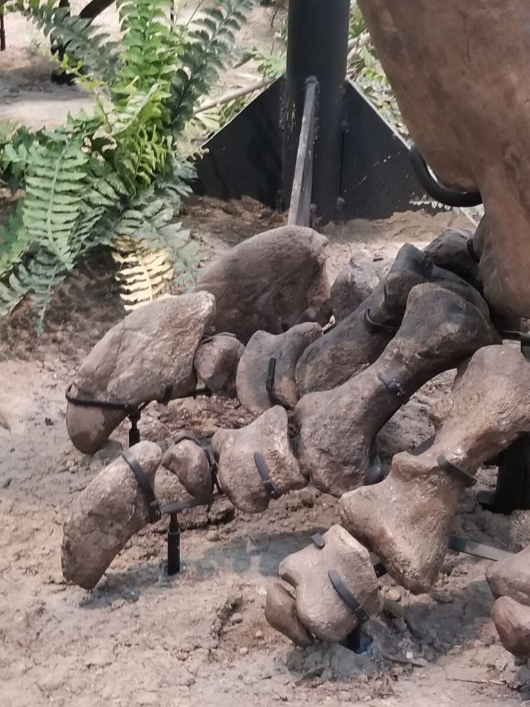 Returning to my original spot within the dinosaur exhibition, I was determined to take a closer look. Could I tell from the fossil evidence how the species on display walked? Was it possible to identify the femur, tibia, and fibula of each skeleton?