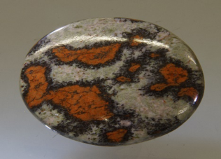 I don’t want to give away too much because I want you to come the museum to see the exhibit in person, but I will reveal two other pieces. They were personally collected at the Bingham Mine in Hamiltonban Township, Adams County, by the 1988 Carnegie Mineralogical Award winner, John Sinkankas, who also cut and polished them. The colors in these cabochons are due to the epidote and cuprite in the META-RHYOLITE, which is a silicified, or metamorphosed, RHYOLITE (an extrusive igneous rock).
