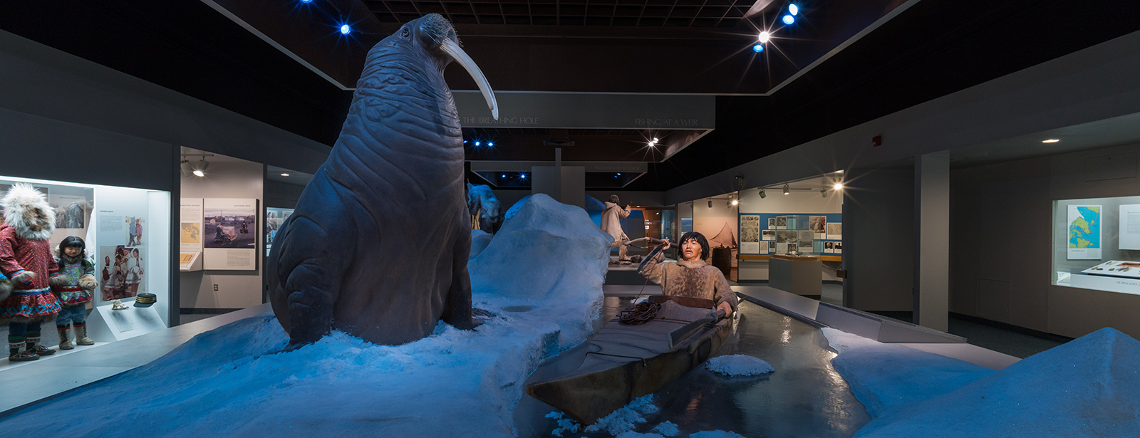 Traversing 4,500 years of Inuit history, learn about the Canadian Inuit and how they’ve adapted to the environmental challenges of life in the Arctic. View Inuit sculptures and prints, full-sized dioramas, and Arctic wildlife like Polar Bears, Caribou, and Walruses. Realistic dioramas and a replica igloo transport you to the arctic in this immersive hall. The hall includes an exhibit on the impact of the whaling industry in the 1930s and 1940s that includes original artifacts from whaling ships.